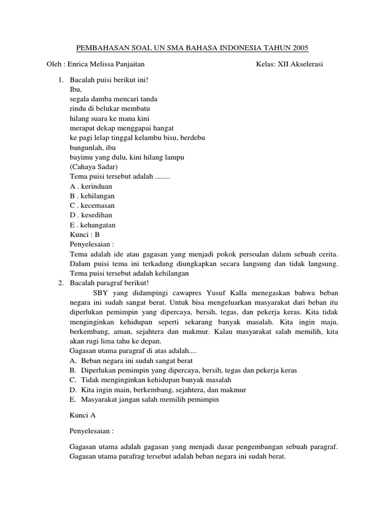 Soal Un Bahasa Indonesia Sma Lengkap Dengan Pembahasannya