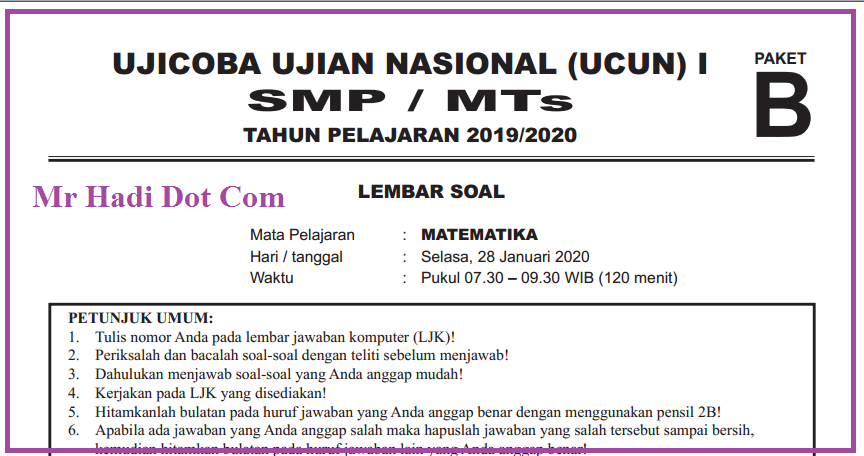 Prediksi Soal Un Matematika Smp Mts Tahun 2020 Paket 1