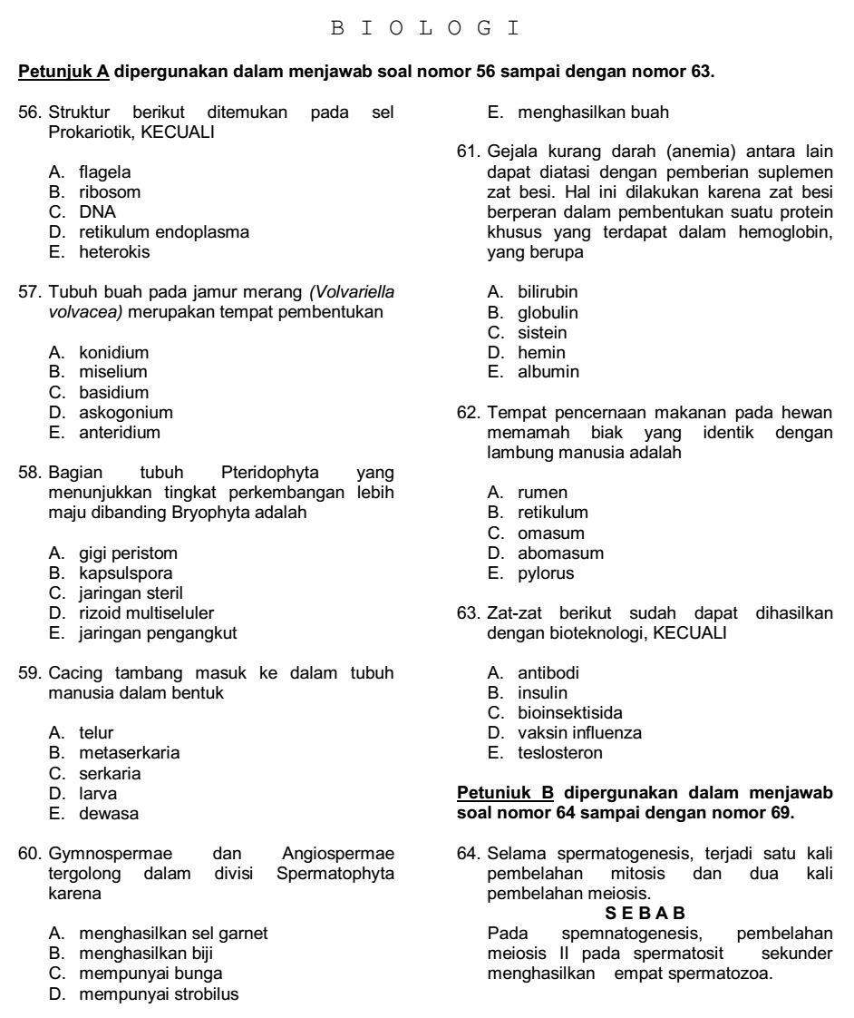 Pembahasan Soal Utul Ugm 2018 Saintek Biologi Kode Soal 276 Myrightspot Com