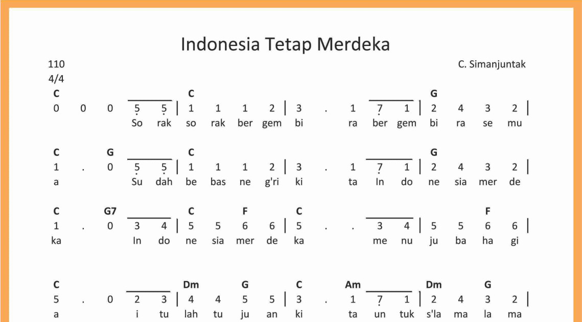 Indonesia Tetap Merdeka Sorak Sorak Bergembira Not Angka Not Balok Lirik Chord Filenya