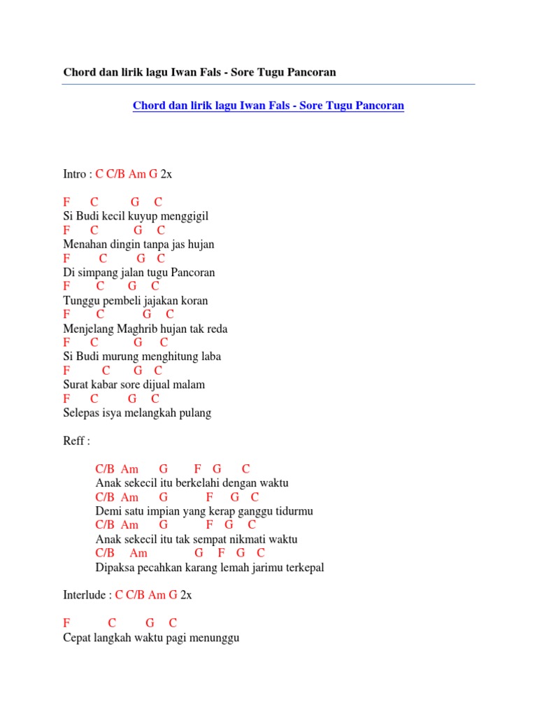 Chord Iwan Fals Sore Tugu Pancoran Tribunjateng Com