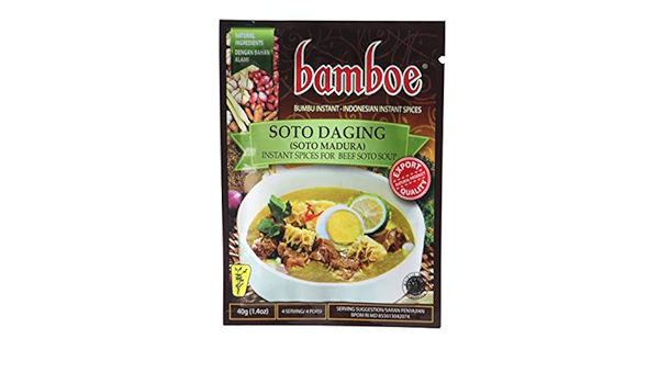 Amazon Com Rt Bamboe Bumbu Soto Daging Soto Madura Instant Spices For Beef Soto Soup 40g A Soto Soup Originated From Madura Soto Is A Very Popular Soup In Indonesia