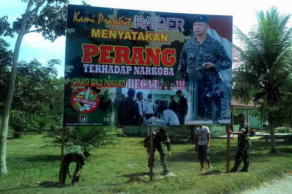 Jajaran Raider Khusus 111 Pasang Spanduk Perangi Narkoba