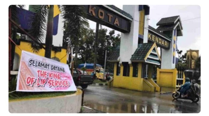 Spanduk Selamat Datang The King Of Lip Service Sambut Kedatangan Jokowi Di Kota Kendari Democrazy News Media Politik Penyeimbang
