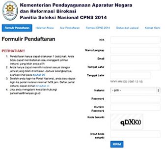 Pendaftaran Cpns 2014 Secara Online Di Sscn Bkn Go Id Pemerintah Aplikasi