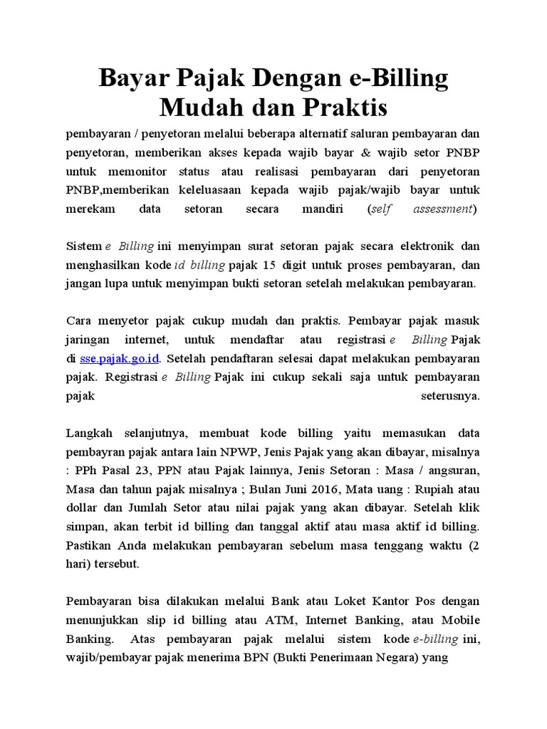 Panduan Lengkap E Billing Sse Pajak