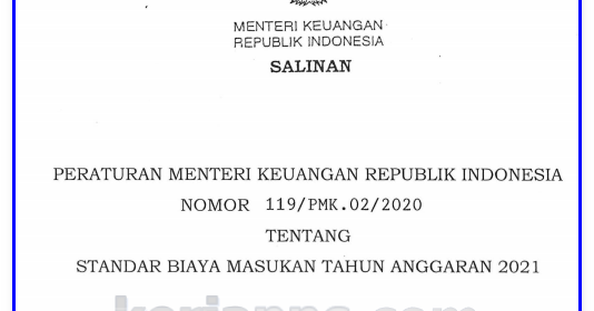 Pmk No 119 Pmk 02 2020 Tentang Standar Biaya Masukan Sbm Tahun Anggaran 2021 Platform Media Comet