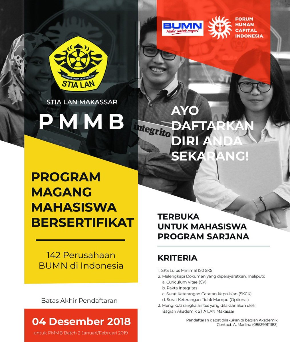 Humas Stia Lan Makassar On Twitter Stia Lan Makassar Bekerja Sama Dengan Forum Human Capital Indonesia Fhci Membuka Program Magang Mahasiswa Bersertifikat Pmmb Untuk Mahasiswa Program Sarjana Stia Lan Makassar Yang Memenuhi