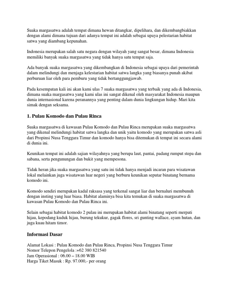 Sebutkan 5 Contoh Suaka Margasatwa Di Indonesia Brainly Co Id