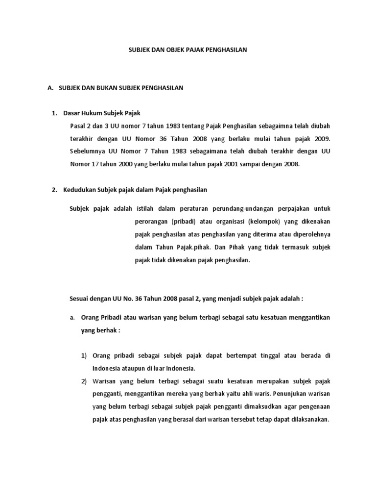 Subjek Pajak Penghasilan Orang Pribadi Badan Warisan Dan But