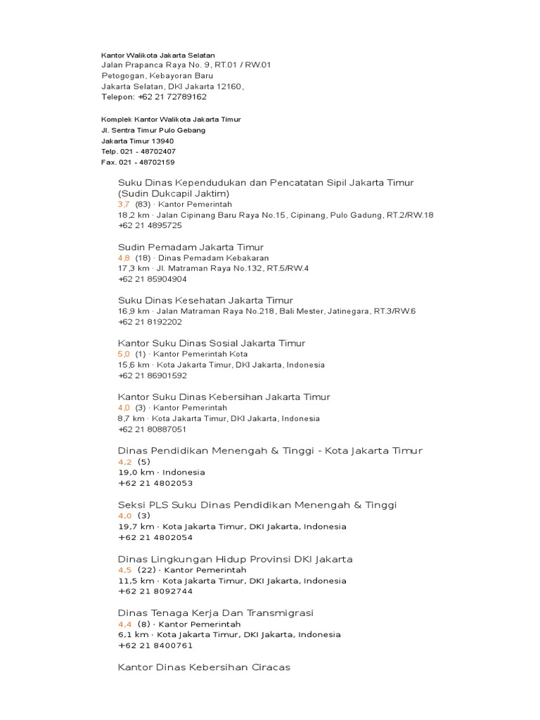 Suku Dinas Kependudukan Dan Pencatatan Sipil Jakarta Selatan Kebayoran Baru Jl Radio V No 1 Kebayoran Baru