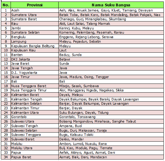 Daftar Nama Suku Bangsa Di Indonesia Pns Dan Guru