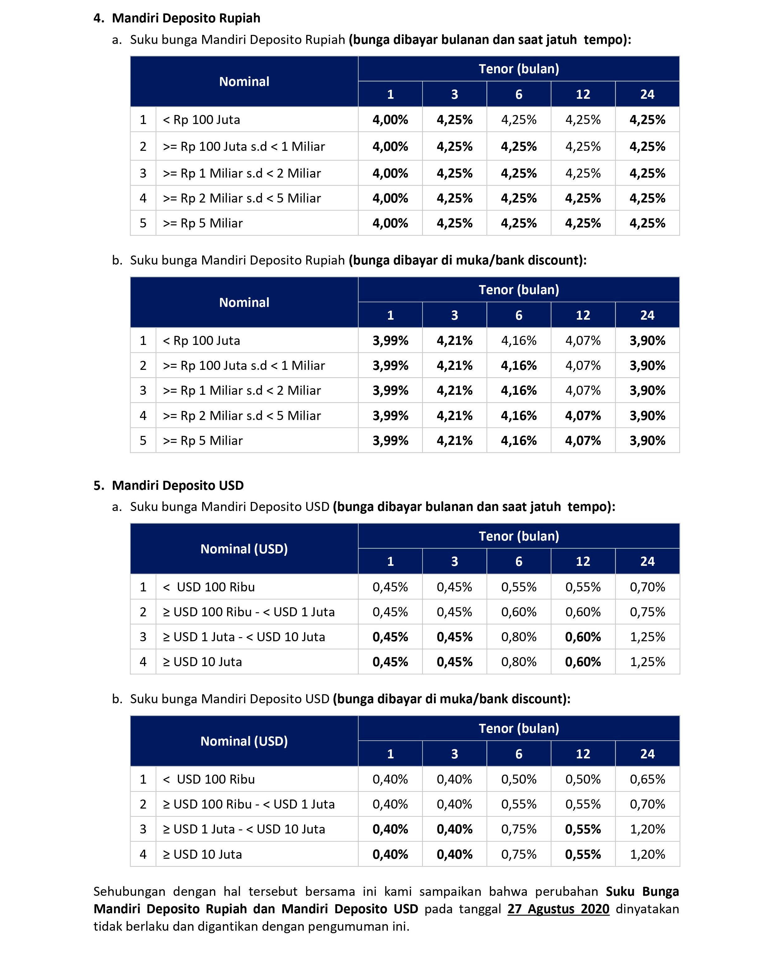 Besaran Suku Bunga Tabungan Bank Mandiri Per Bulan Bankku Com 2020