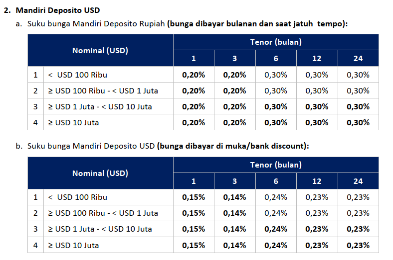 Tabel Besaran Bunga Deposito Mandiri Sesuai Isi Tabungan Gadaian Com 2021