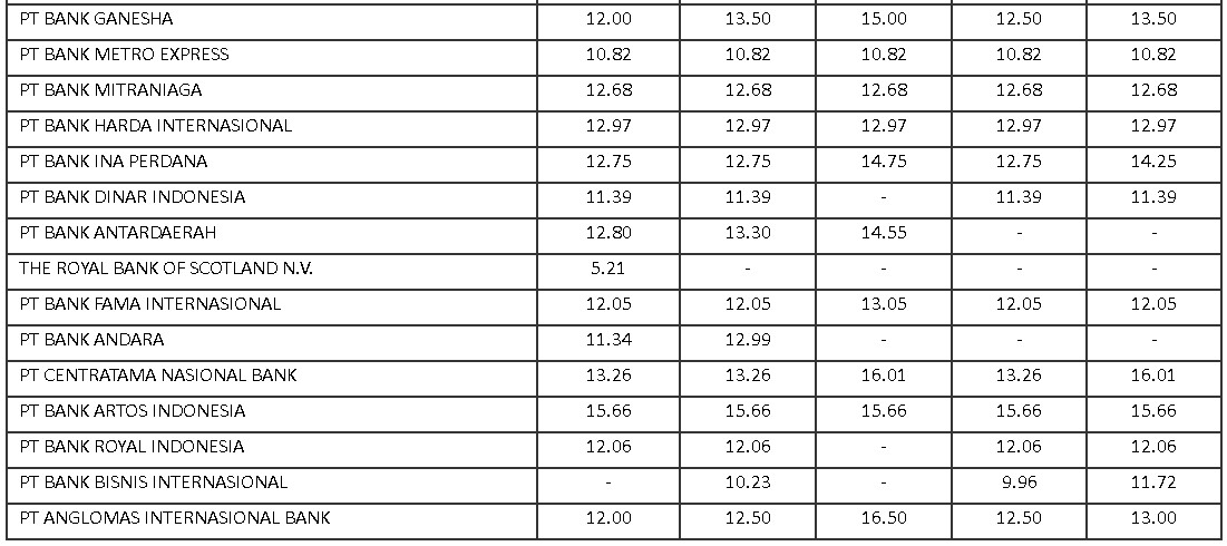 Daftar Suku Bunga Dasar Kredit 10 Bank Di Ri