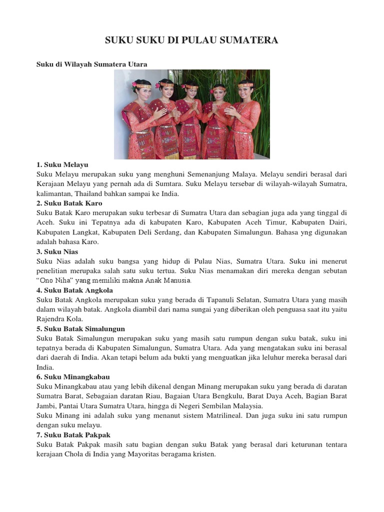Suku Di Pulau Sumatera Suku Suku Di Indonesia
