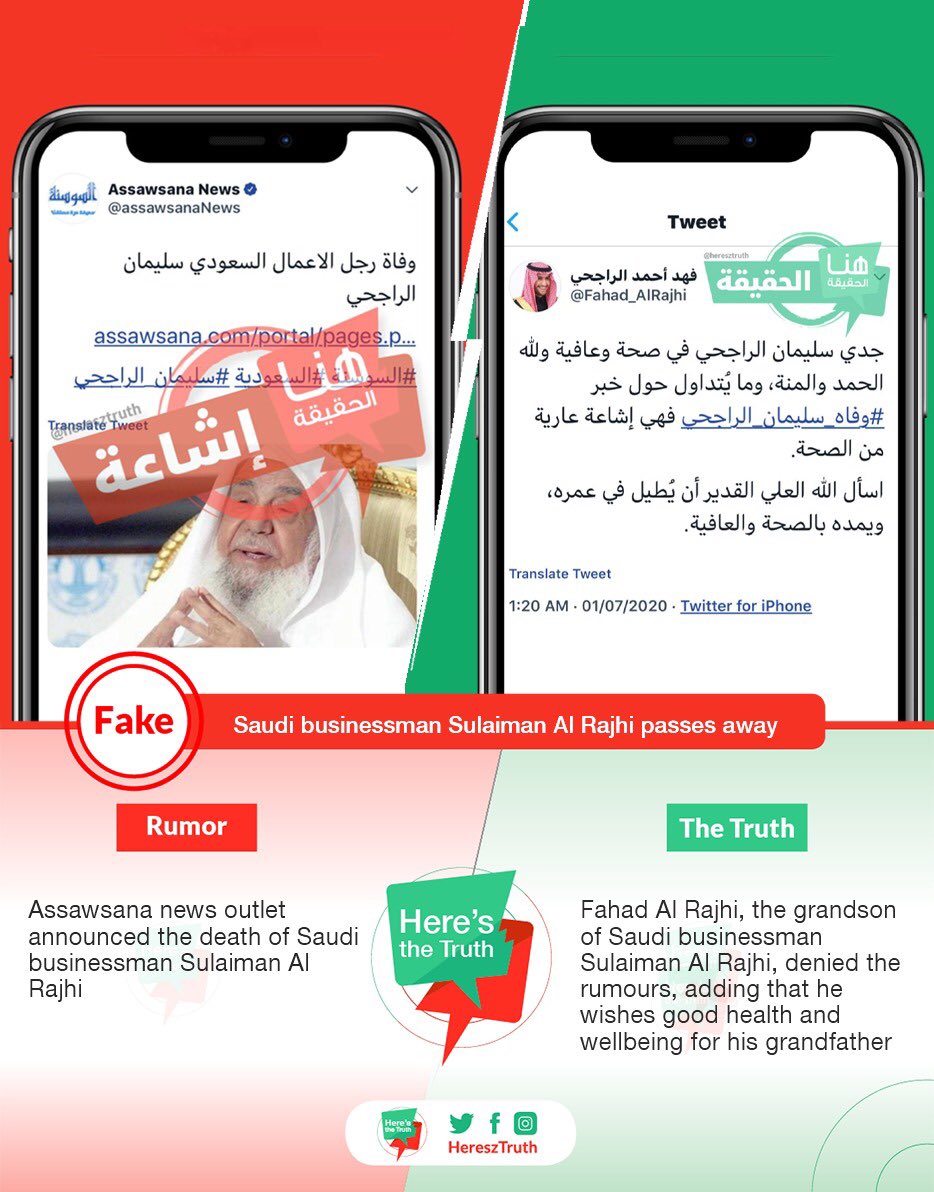 ÙÙØ§ Ø§ÙØÙÙÙØ© On Twitter The Rumor Assawsana News Outlet Announced The Death Of Saudi Businessman Sulaiman Al Rajhi The Truth Fahad Al Rajhi The Grandson Of Saudi Businessman Sulaiman Al
