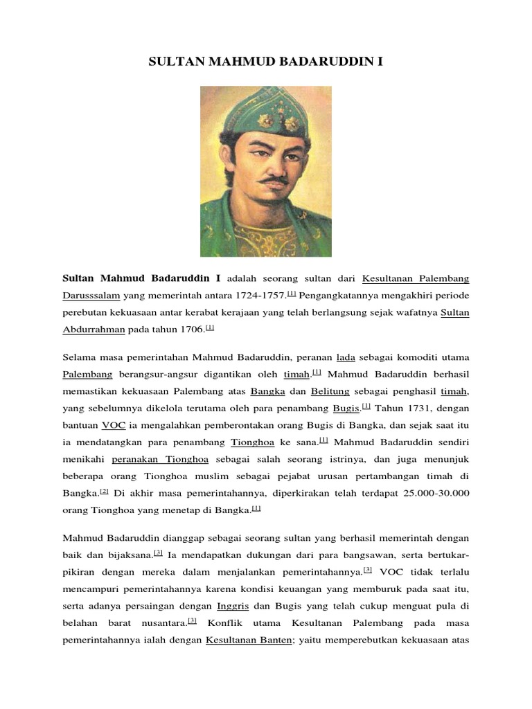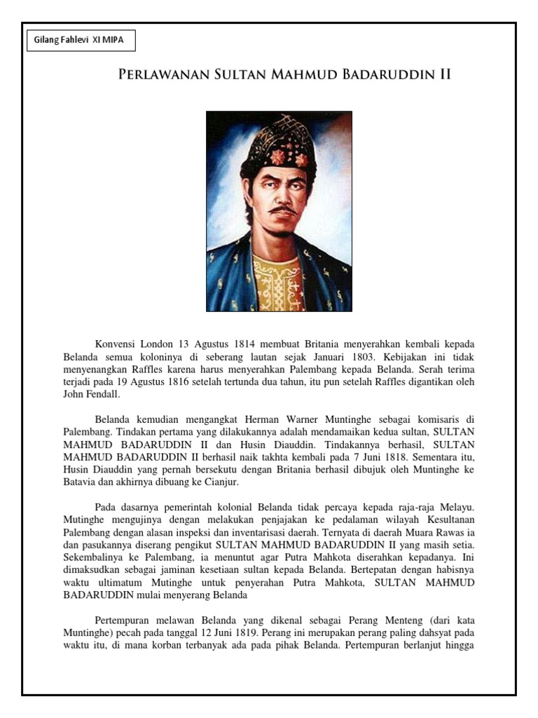 Profil Sultan Mahmud Badaruddin Ii Merdeka Com