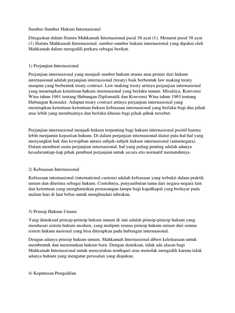 Sebutkan Dan Jelaskan Sumber Sumber Hukum Internasional Coba Sebutkan