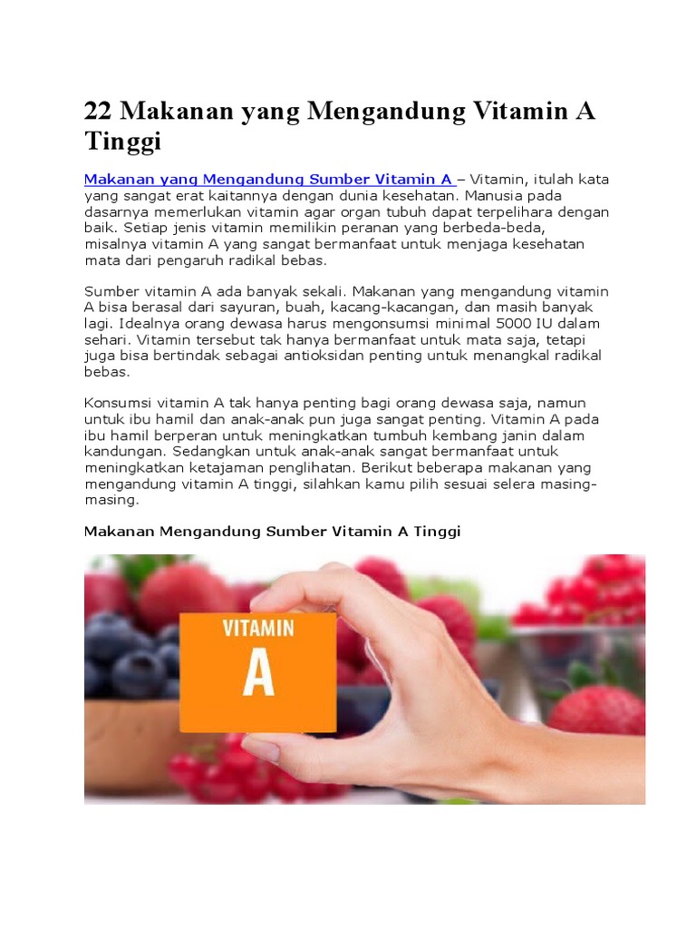 Vitamin A Manfaat Sumber Efek Kekurangan Dan Kelebihan Honestdocs