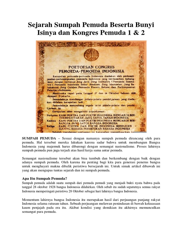 Teks Sumpah Pemuda Pdf Link Download Naskah Dan Isi Sumpah Pemuda 3 Ikrar Pemuda Indonesia 28 Oktober 1928 Portal Kudus