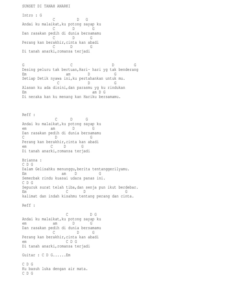 Chord Gitar Dan Lirik Sunset Di Tanah Anarki Superman Is Dead Andai Ku Malaikat Ku Potong Sayapku Tribunnews Com Mobile