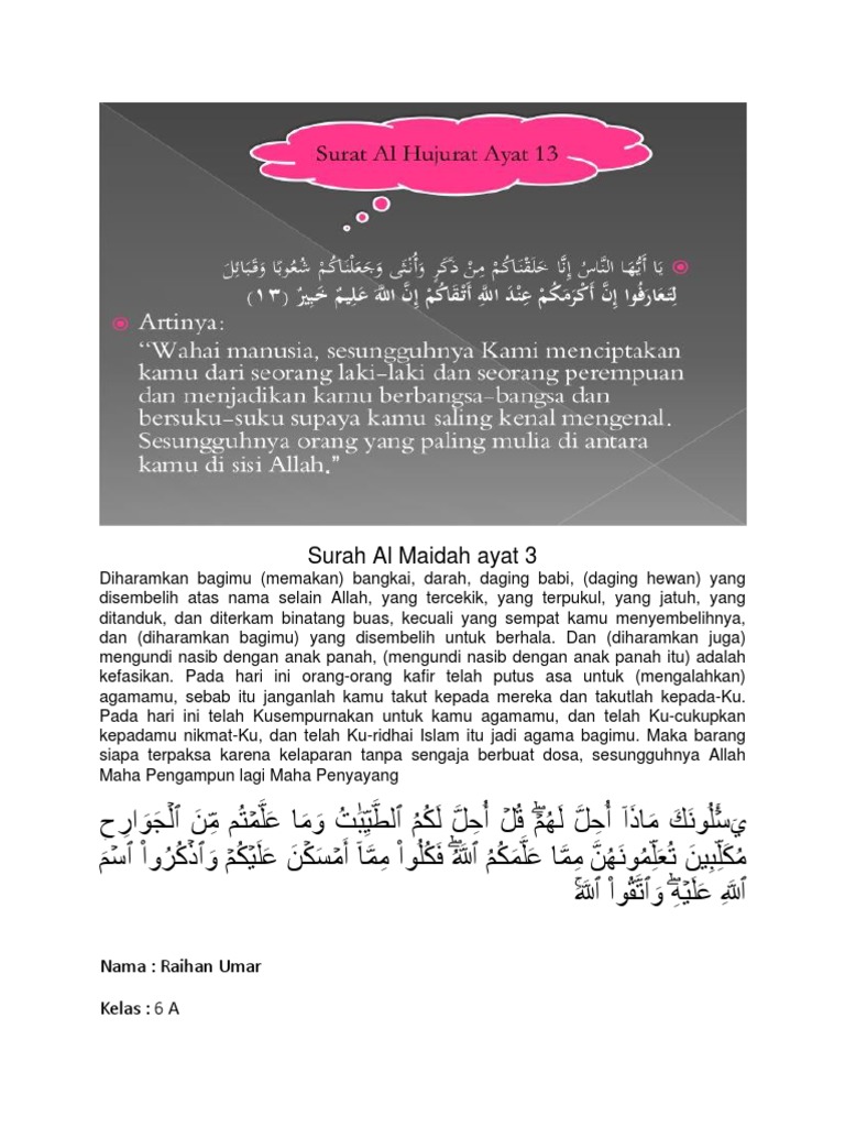 Surat Al Maidah Ayat 3 Dan Surat Al Hujurat Ayat 13