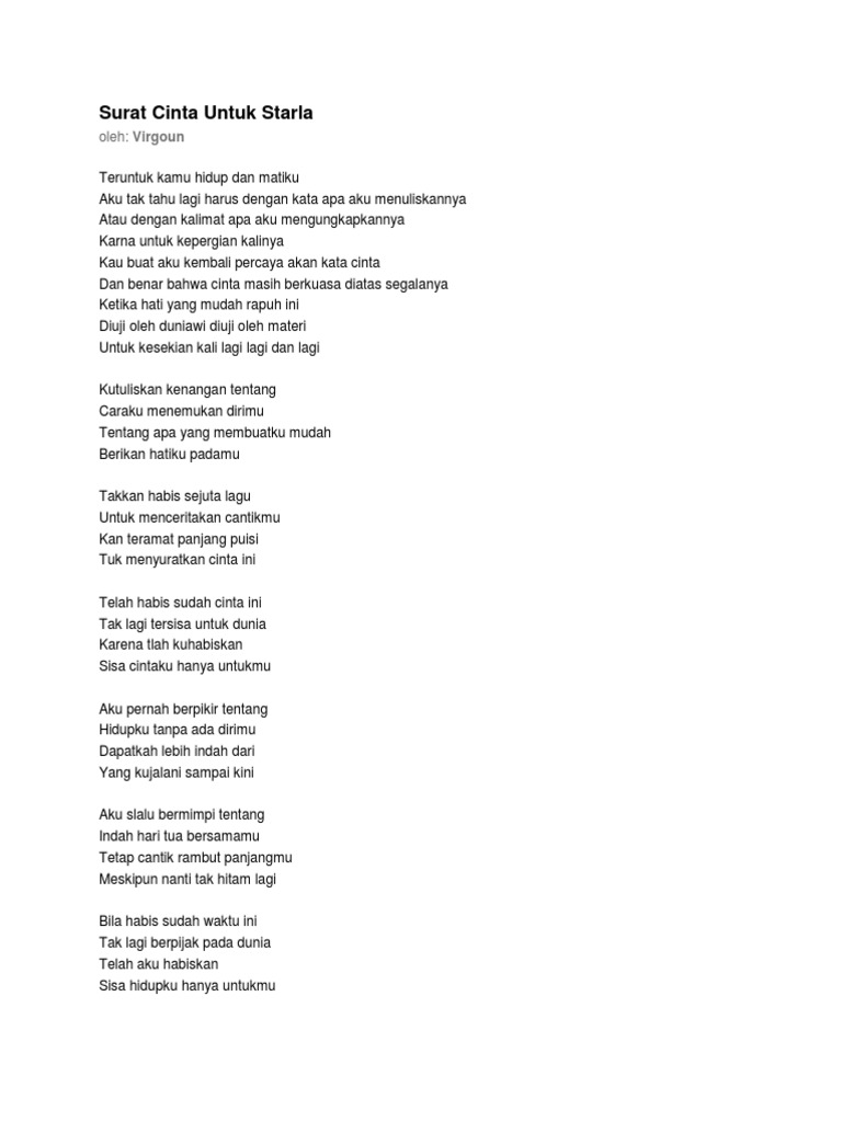 Lirik Lagu All Surat Cinta Untuk Starla Virgoun Wattpad