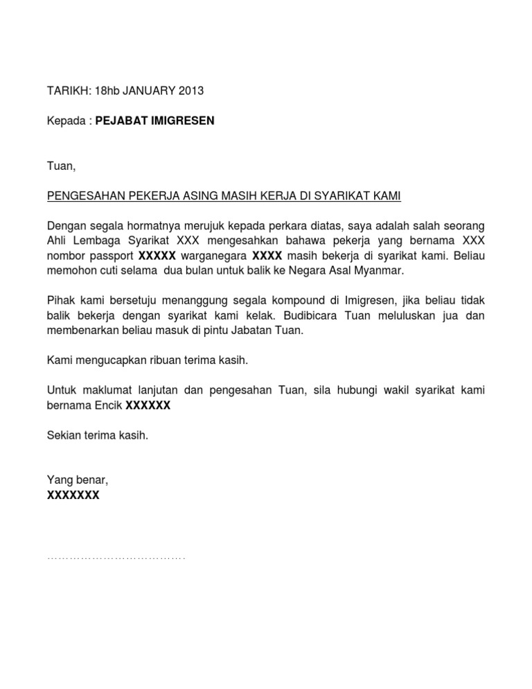 Contoh Surat Permohonan Cuti Kerja Bahasa Melayu Letter 7saudara Com