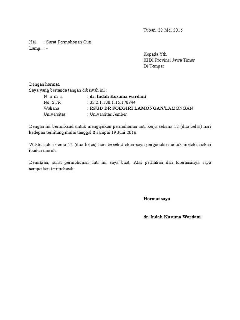 27 Draf Surat Permohonan Cuti Kerja By Arif Edison Lawyer Issuu