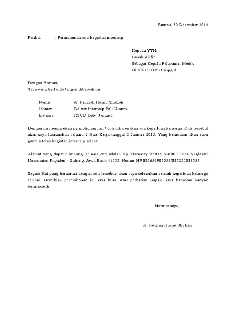 12 Contoh Surat Permohonan Cuti Untuk Berbagai Keperluan Lezgetreal