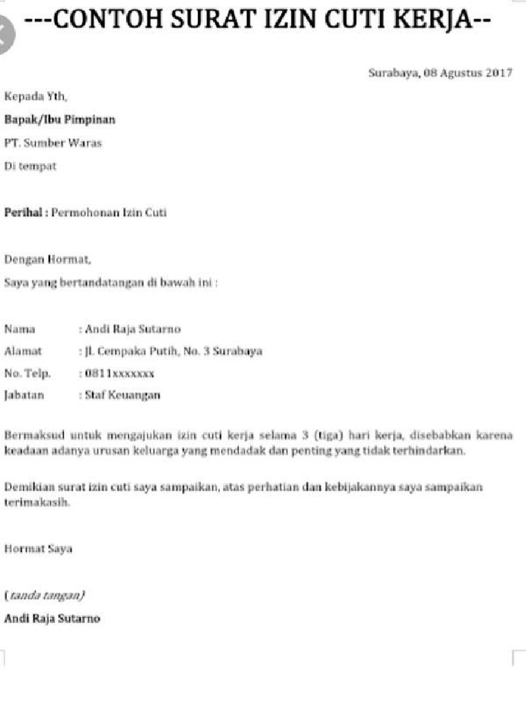 Contoh Surat Permohonan Cuti Kerja Yang Baik Dan Benar Mamikos Info