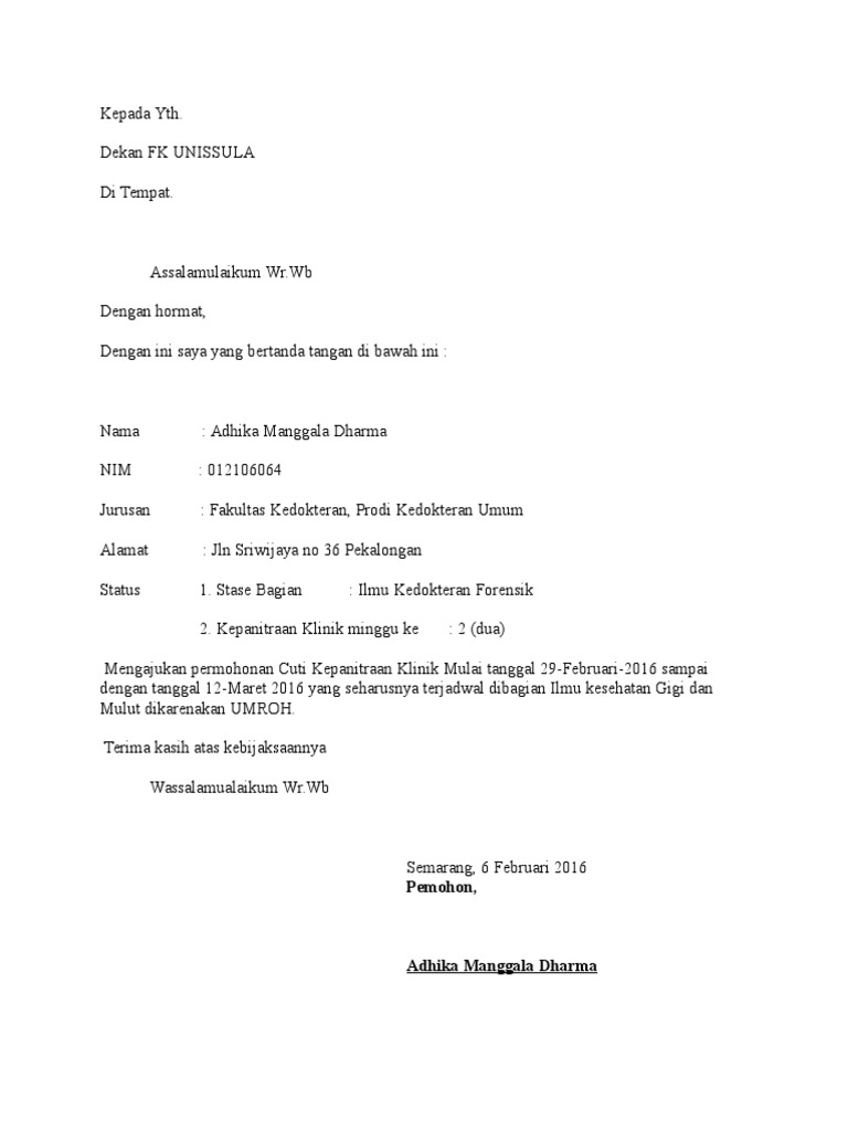 Contoh Surat Permohonan Cuti Kuliah Yang Baik Belajar Office