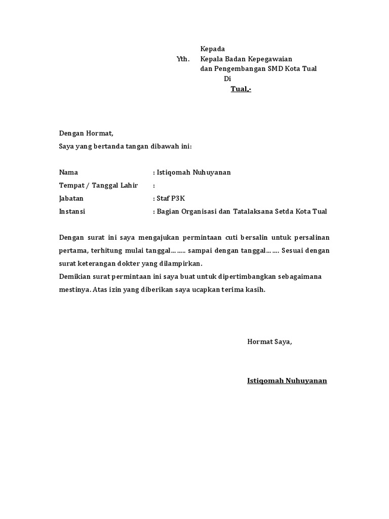 7 Contoh Surat Izin Cuti Melahirkan Dari Bidan Dokter Perangkat Desa