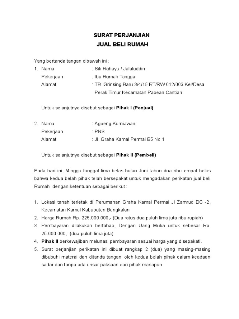 Contoh Surat Perjanjian Jual Beli Rumah Pdf Content