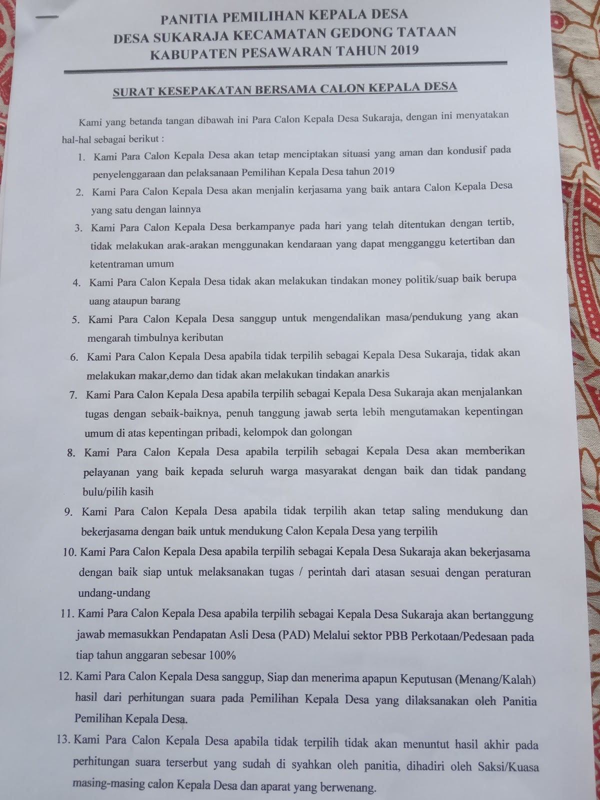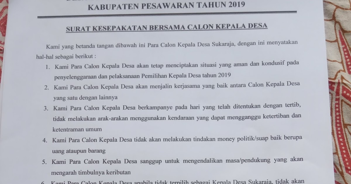 Ini Lah Surat Kesepakatan Bersama Calon Kepala Desa Sukaraja