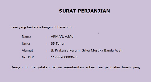 Surat Perjanjian Pemberian Fee Pembelian Tanah
