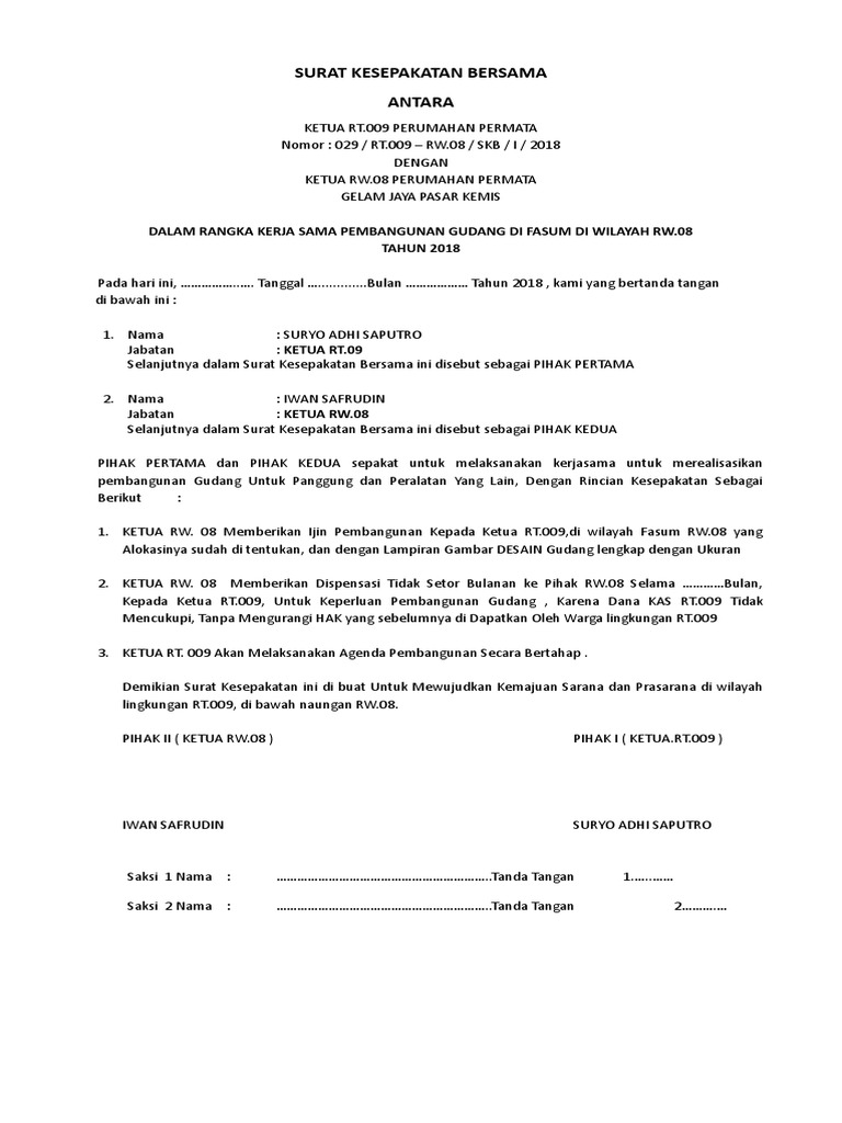 Contoh Surat Surat Kesepakatan Bersama