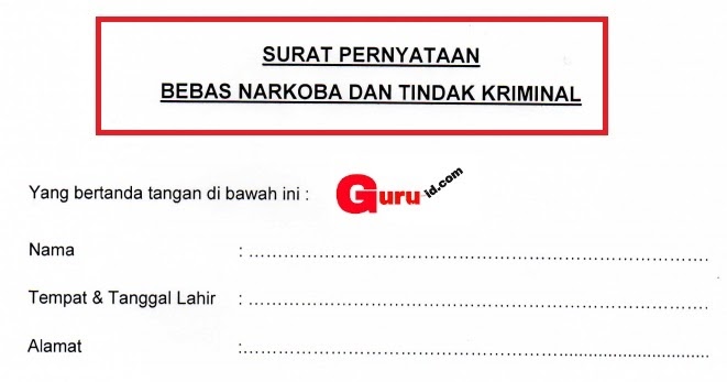 Surat Pernyataan Bebas Narkoba Dan Tindak Kriminal Doc Info Gtk Terbaru