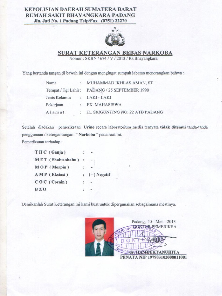 Cara Membuat Surat Keterangan Bebas Narkoba Contoh