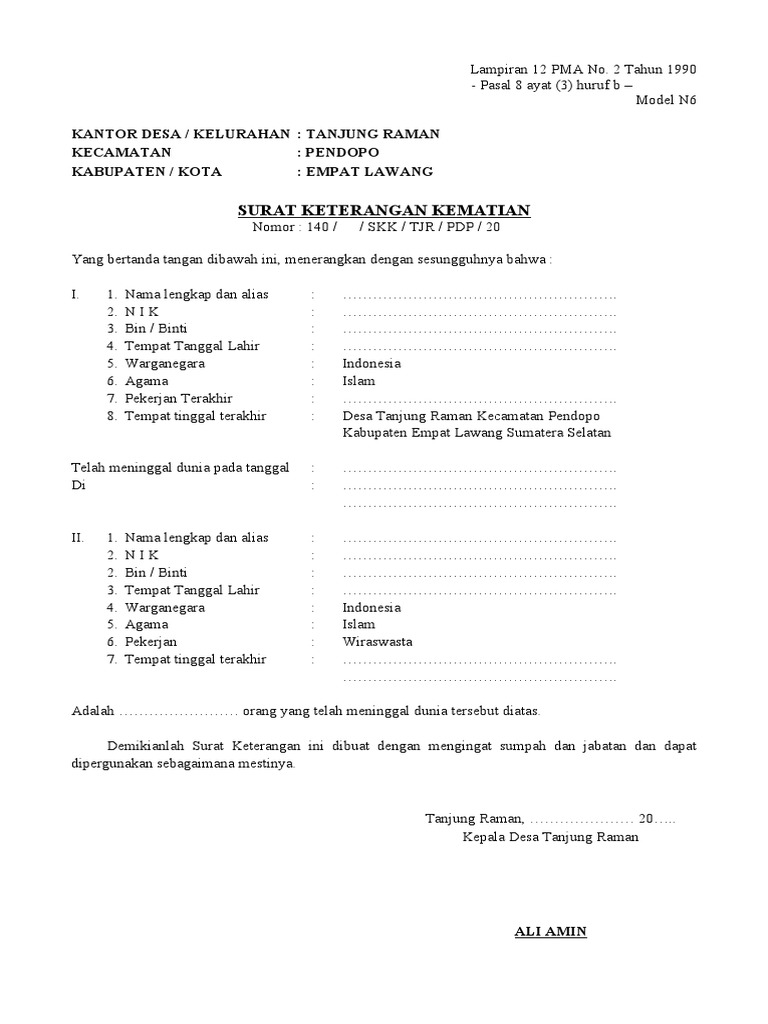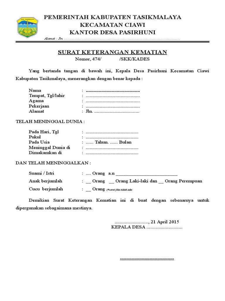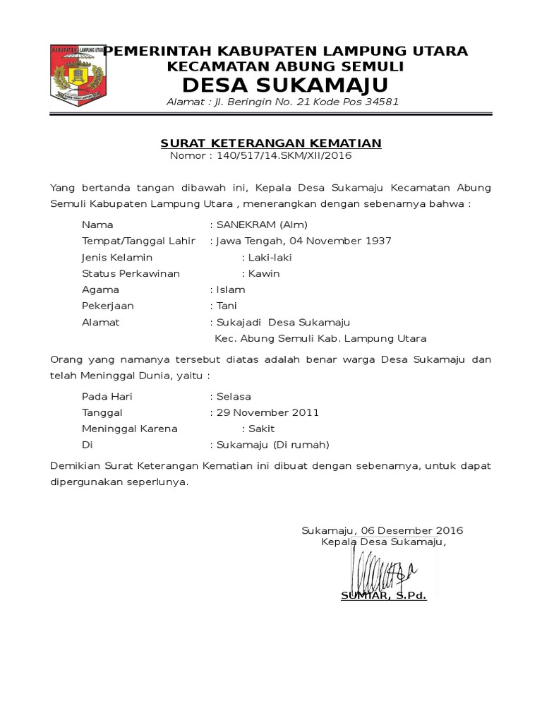 Download Contoh Surat Keterangan Kematian Dari Kelurahan Atau Desa Terbaur