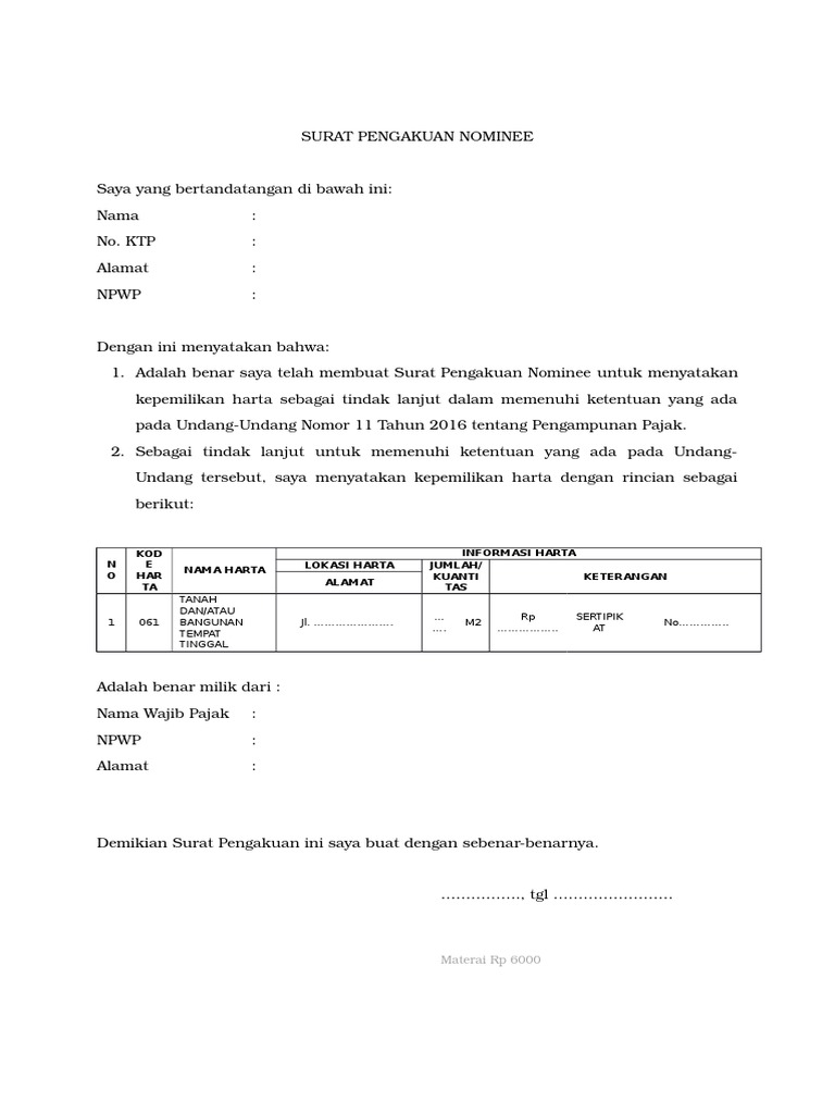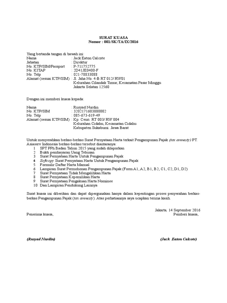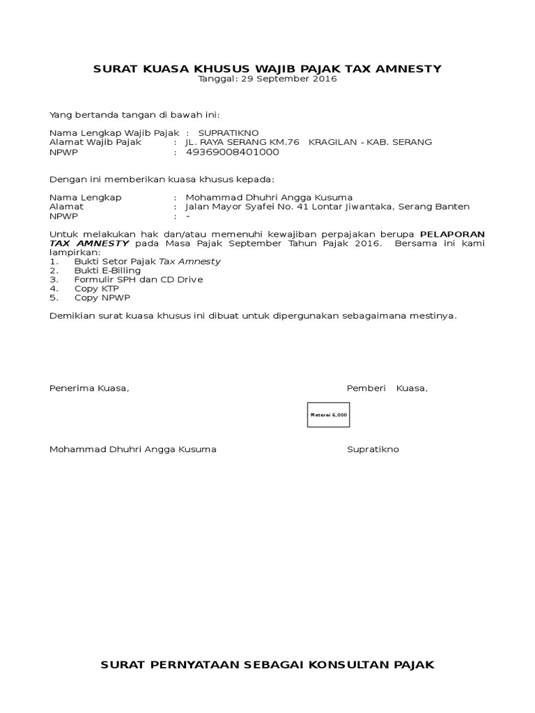 Contoh Surat Kuasa Tax Amnesty Yang Benar Dicontoh