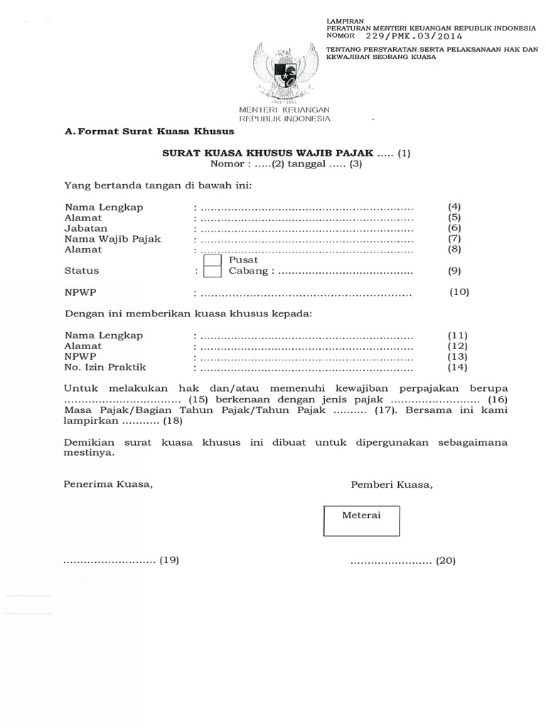 Contoh Surat Kuasa Khusus Untuk Tax Amnesty Surat Cc