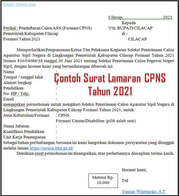 Surat Lamaran Cpns 2021 Sinau Thewe Com