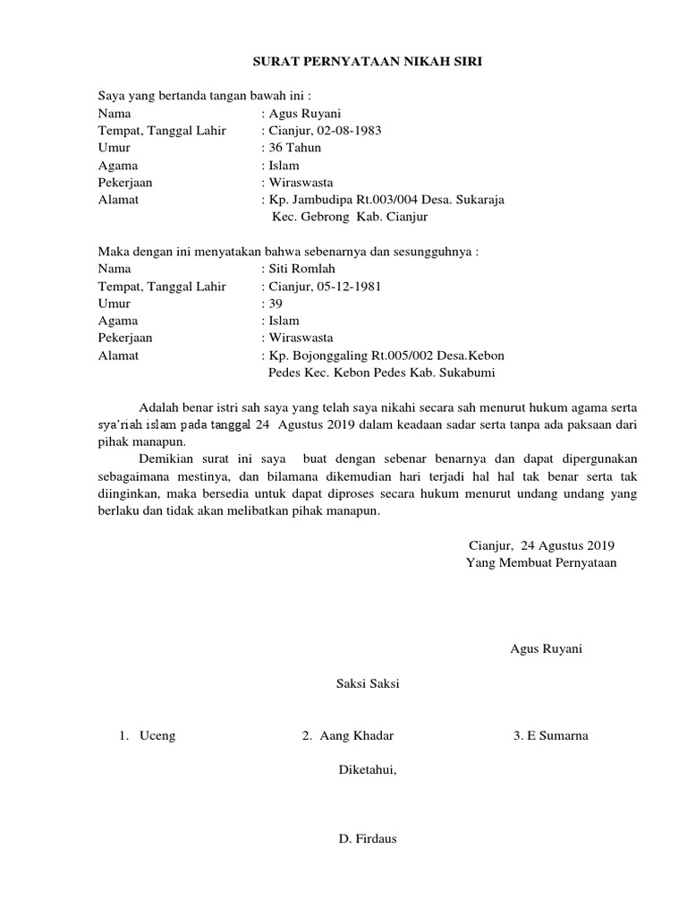 Cara Membuat Surat Pernyataan Nikah Siri Dan Contoh Lengkapnya