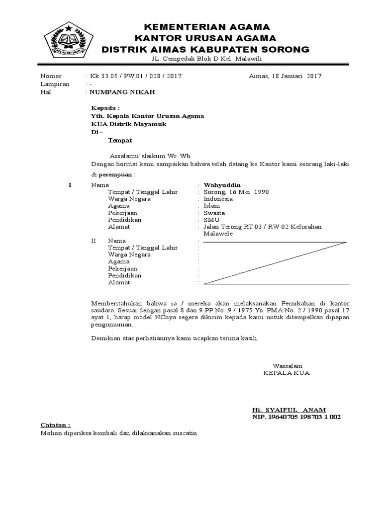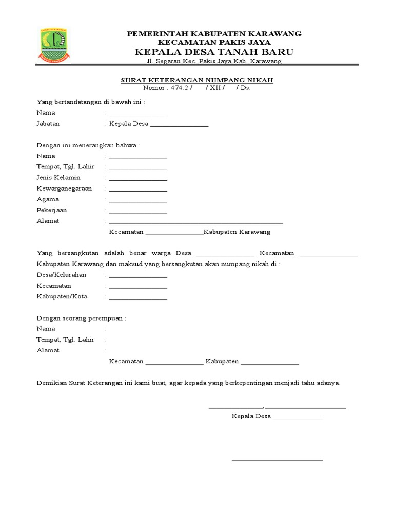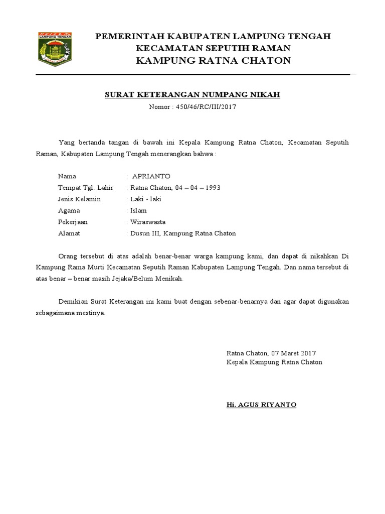 Contoh Surat Numpang Nikah Dari Desa Nusagates