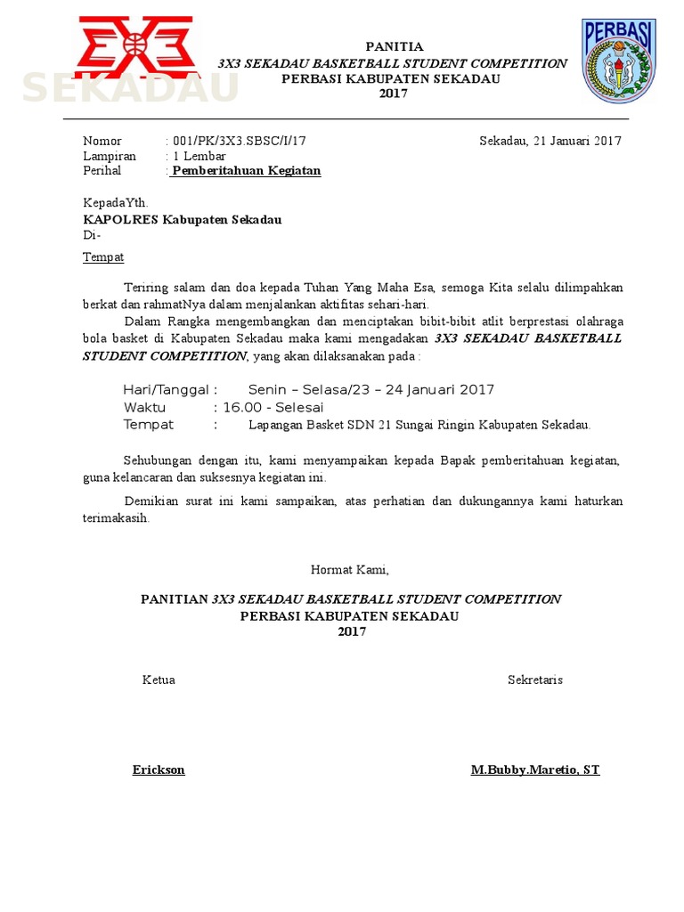 Contoh Surat Pemberitahuan Acara Ke Polisi Contoh Surat