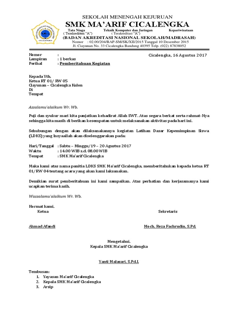 Download Contoh Surat Pemberitahuan Kegiatan Yang Benar