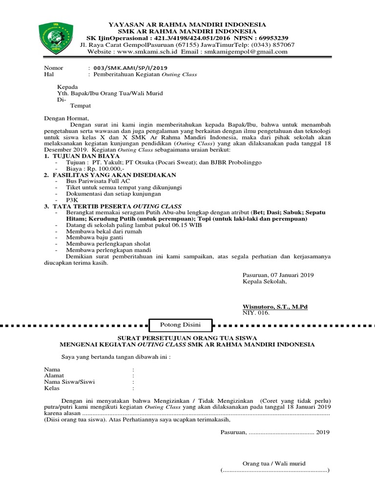 Surat Pemberitahuan Dan Ijin Orang Tua Kegiatan Pesta Siaga Tahun 2018 Mariyadi Com
