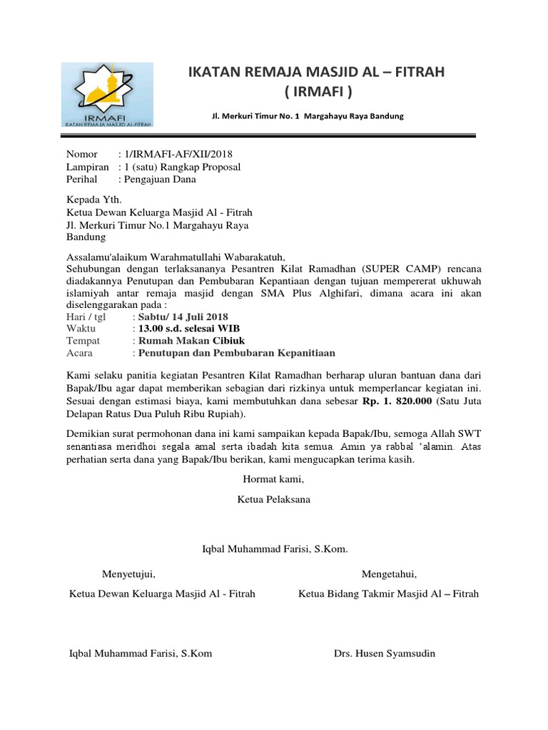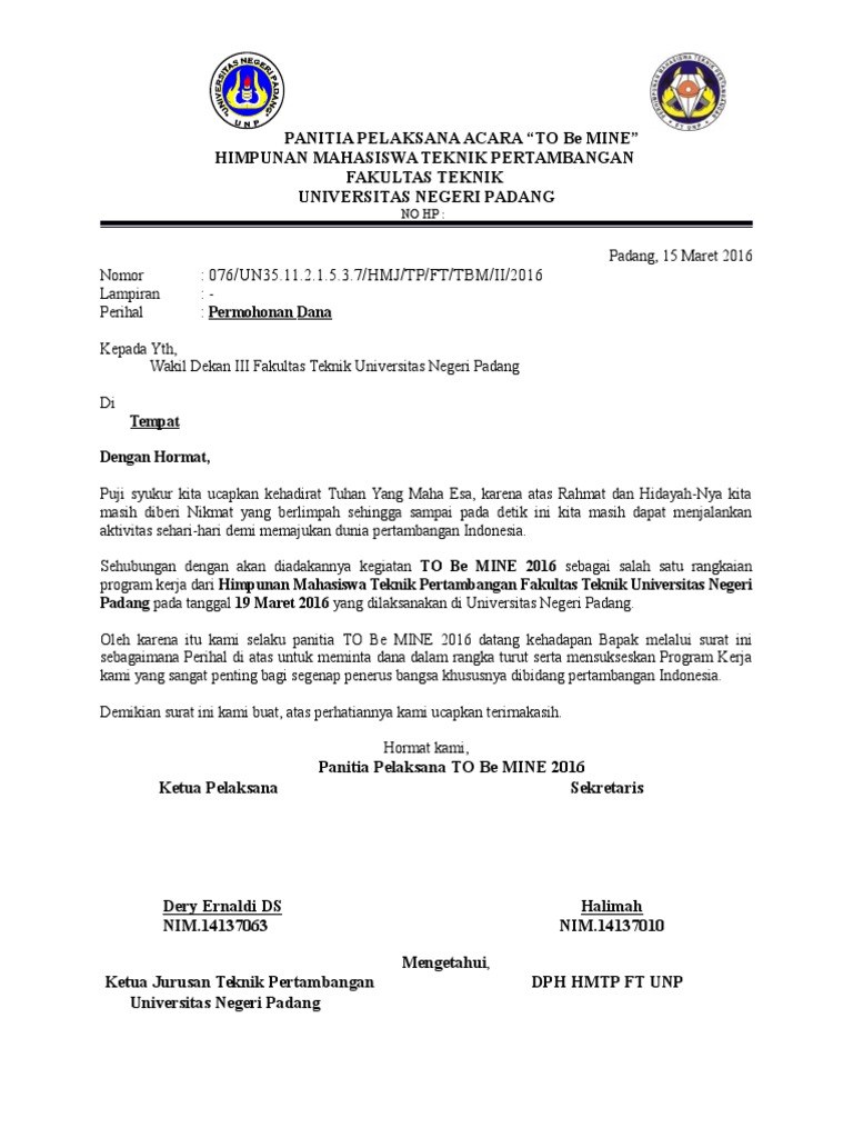 Contoh Surat Permohonan Dana Kegiatan Kumpulan Contoh Surat Dan Soal Terlengkap
